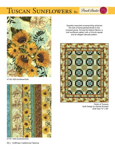 Tuscan Sunflowers By Superbly executed screenprinting achieves the look of hand-painted florals in this bouquet group. Among the feature fabrics: a lush sunflower pattern with a 24-inch-repeat and an elegant damask pattern.