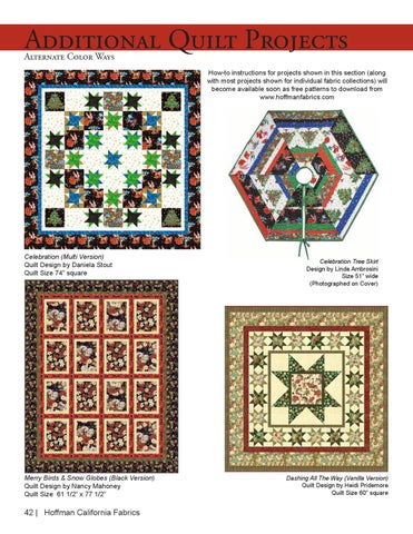 How-to instructions for projects shown in this section (along with most projects shown for individual fabric collections) will become available soon as free patterns to download from www.hoffmanfabrics.com