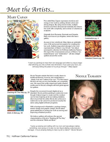Celestial Dreams pg. 34 “I want my paintings to have their own language and reflect a unique image that will bring you into a whole new dimension. If you open your soul, you will enjoy letting the peace of my art go through.” -Mary Capan