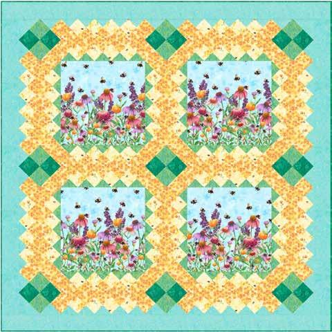 Quilt design by Bear Hug Quiltworks, featuring Buzzin' Around, a Hoffman Spectrum Digital Print collection. Feel the buzz of Spring with this fun little four part pattern!