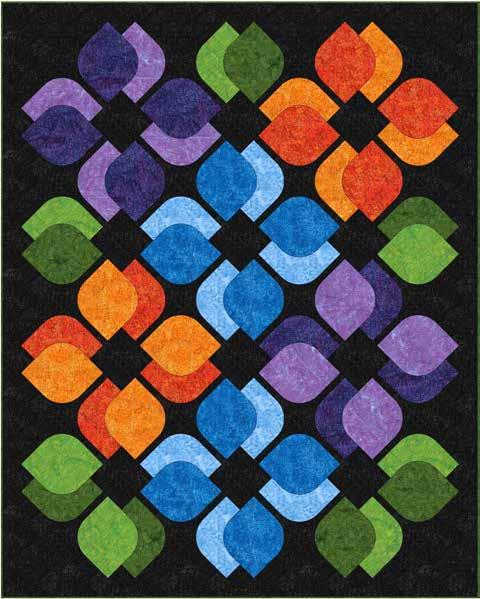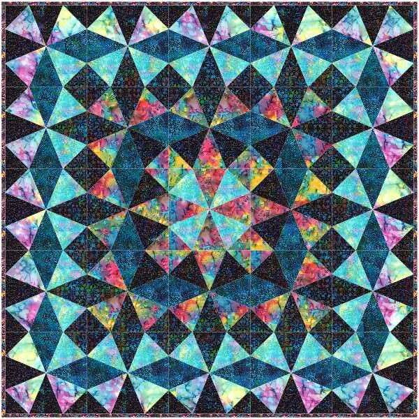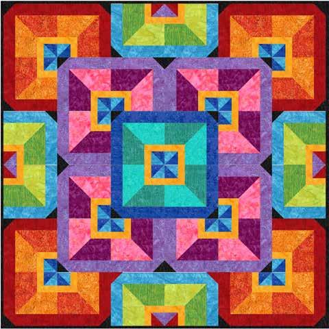 Quilt design by Quiltworx, featuring Hoffman Bali Batiks, the Painted in Prism collection. A foundation paper-pieced design created in Quiltster by combining predesigned units from the Hosta Mixer series.