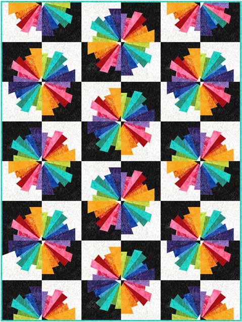 Quilt design by Colourwerx, featuring Hoffman Bali Batiks, the Over the Rainbow collection. Paper pieced units come together to create this super modern design.