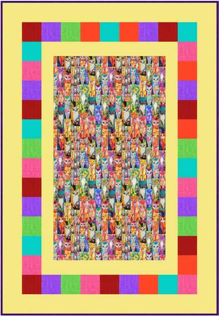 Quilt design by Bear Hug Quiltworks, featuring Crafty Cats, a Hoffman Spectrum Digital Print collection. A fun color palette brings out the best of these feline friends!