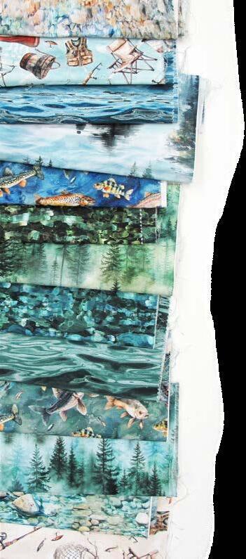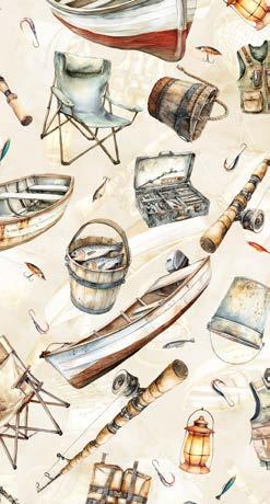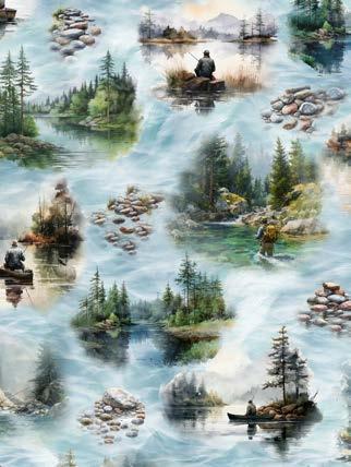 Designed for freshwater enthusiasts, Rise and Cast captures the spirit of life on the water. This thirteenpiece collection features detailed fishing scenes, rich earth tones, and authentic coordinates woven throughout the designs. Whether you’re stitching for the cabin or crafting a keepsake, these fabrics reel in the beauty of the outdoors.