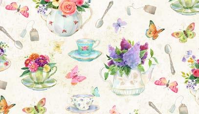 You’re invited to tea. Secret Garden Tea Co. is a charming fifteen-piece spring collection filled with blooming florals, fluttering butterflies, watercolor elegance, and sweet tea-time motifs. Coordinating blenders tie everything together, making this collection effortlessly cohesive and delightfully romantic.