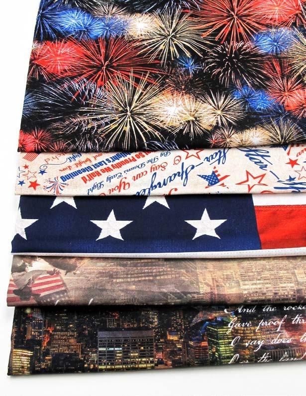 Celebrate 250 years of courage and freedom with Freedom Ring. This five-piece patriotic collection honors the land of the free and the home of the brave with a detail-rich American panel full of hidden tributes to the USA. For the first time, we’re featuring a realistic canvas-style flag print ready for quilting, borders, and creative embellishment. Bold, proud, and timeless in red, white, and blue.