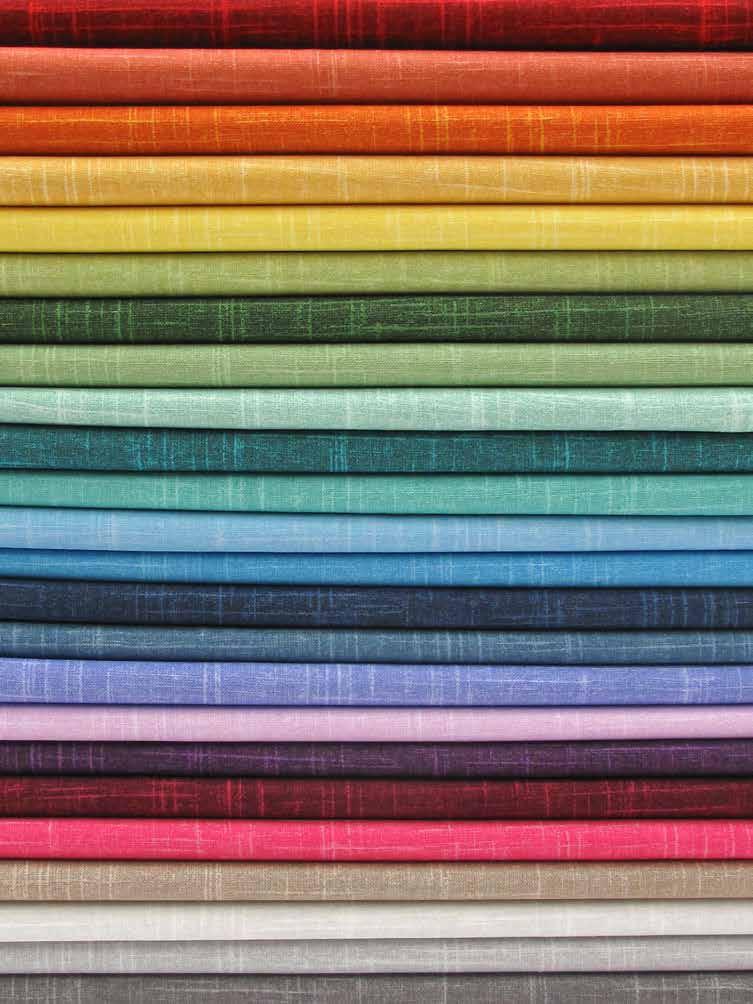 100% COTTON. EACH COLORWAY CONTAINS 12 FAT QUARTERS IN EACH BUNDLE, EXCEPT FOR THE LINEN-RAINBOW COLORWAY WHICH CONTAINS 14 FAT QUARTERS. BUNDLES SOLD SEPARATELY.