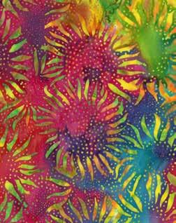 Quilt design by Twister Sisters, featuring Hoffman Bali Hand-dyes and Batiks.