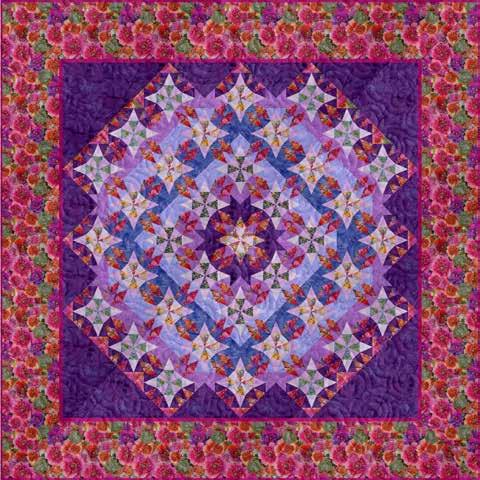 Quilt design by Marlies Janssen of Candy Quilt Design, featuring Whimsical Flower Garden, Marlies signature Hoffman Spectrum Digital print collection. A stunning quilt design that features a vibrant arrangement of triangles, expertly paper-pieced together to form a radiant star.