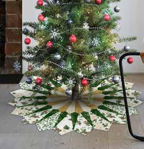 A tree skirt full of holiday joy and elegance! Tree skirt finishes at 40” diameter.