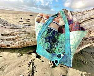 The Sand in my Tote kit includes all fabrics to make one reversible tote. Customers will need to add a batting of their choice to use as interfacing.