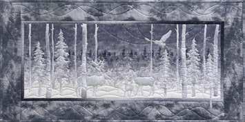 Hear the echo of snow and experience the soft light of the moon reflection with this stunning Winter wall hanging, featuring McKenna Ryan’s Jinglebell Woods signature digital collection. This kit includes everything needed to create one wall hanging. Binding, border and backing fabrics are included as well as McKenna Ryan’s Enchanted Forest Pattern.