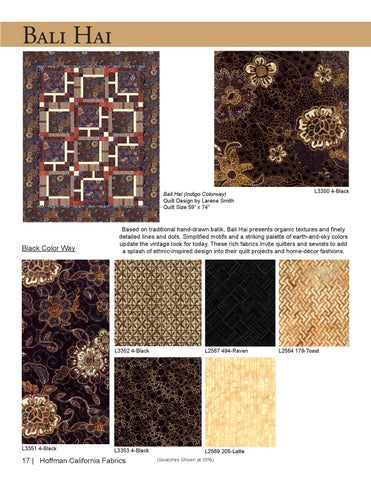 Based on traditional hand-drawn batik, Bali Hai presents organic textures and finely detailed lines and dots. Simplified motifs and a striking palette of earth-and-sky colors update the vintage look for today. These rich fabrics invite quilters and sewists to add a splash of ethnic-inspired design into their quilt projects and home-décor fashions.