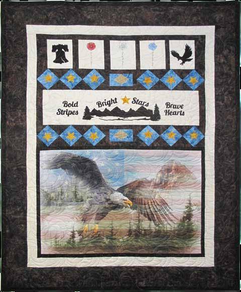 Quilt design by Needle In a Hayes Stack, featuring American Wild, a Hoffman Spectrum Digital Print collection. Fly high with this perfect combination of a revered symbol of America and a distinguished border design.
