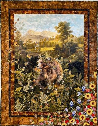 Quilt design by Bear Hug Quiltworks, featuring Among the Ferns, a Hoffman Spectrum Digital Print collection. Cast your gaze on this easygoing bear in his wonderful world of ferns with this beautiful border color palette.