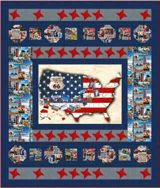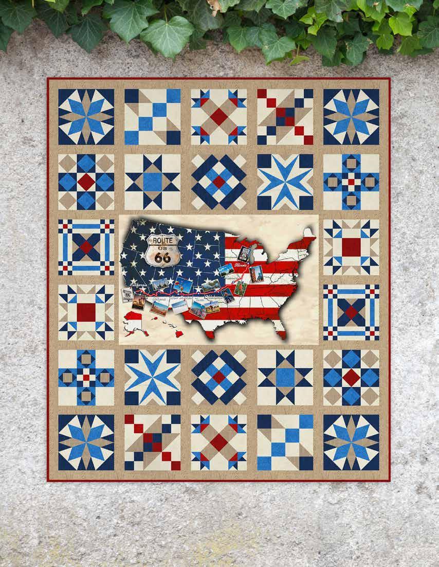 BACK: ROUTE 66 BOM by Tourmaline & Thyme Quilts (See page 47 for details)