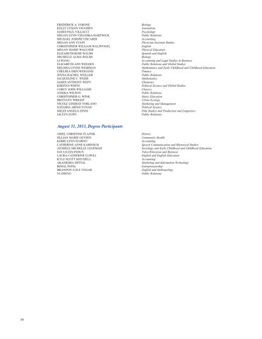 Frederick A. Varone Kelly Lyman Vaughen James Paul Villacci Megan Lynn Visanska-Hartwick Michael Joseph Viscardi Megan Ann Vulpi Christopher William Waldvogel Megan Marie Wallner Elizabeth Rose Walsh Michelle Alma Walsh Li Wang Elizabeth Ann Weeden Melissa Lynne Weibman Chelsea Erin Weigand Jenna Rachel Weiller Jacqueline C. Weiss James Anthony Wepy Kirsten White Corey John Williams Anieka Wilson Christopher G. Wink Brittany Wright Nicole Lindsay Yorlano Natasha Arooj Yunas Miles Angelo Zinni Jaclyn Zupo
