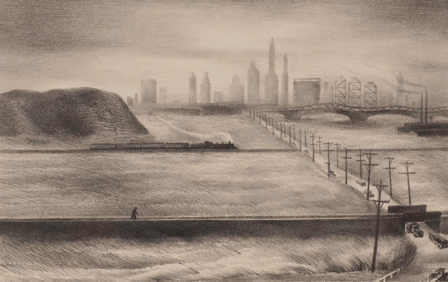 A pair of lithographs by Louis Lozowick, Into the Canyon and Open Mine (Crushed Rock), tell me many stories of the Earth and our relationship to it. What do they say to you?