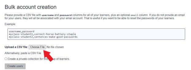 Once the file has been uploaded click “Create users”. Or access a tutorial video on uploading the .CSV file.