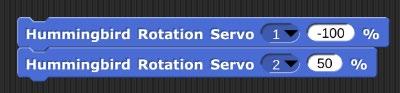 Hummingbird rotation sensors (up to 2) and servo hardware