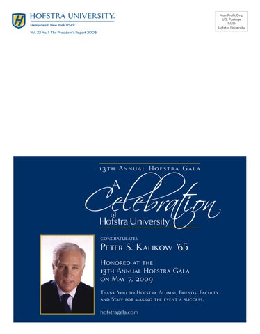 Peter S. Kalikow ’65 Honored at the 13th Annual Hofstra Gala on May 7, 2009 Thank You to Hofstra Alumni, Friends, Faculty and Staff for making the event a success.