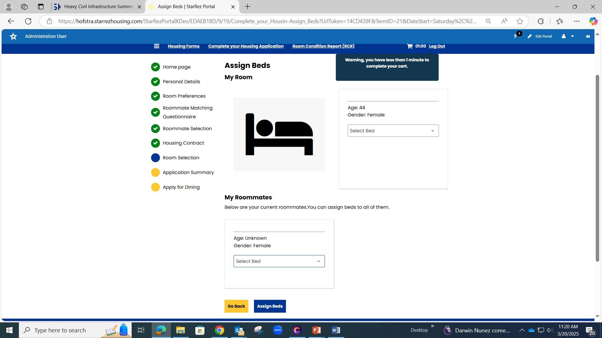 3. Click on “Sleep/Study w/out toilet/Bath” then click on “Assign Beds”.