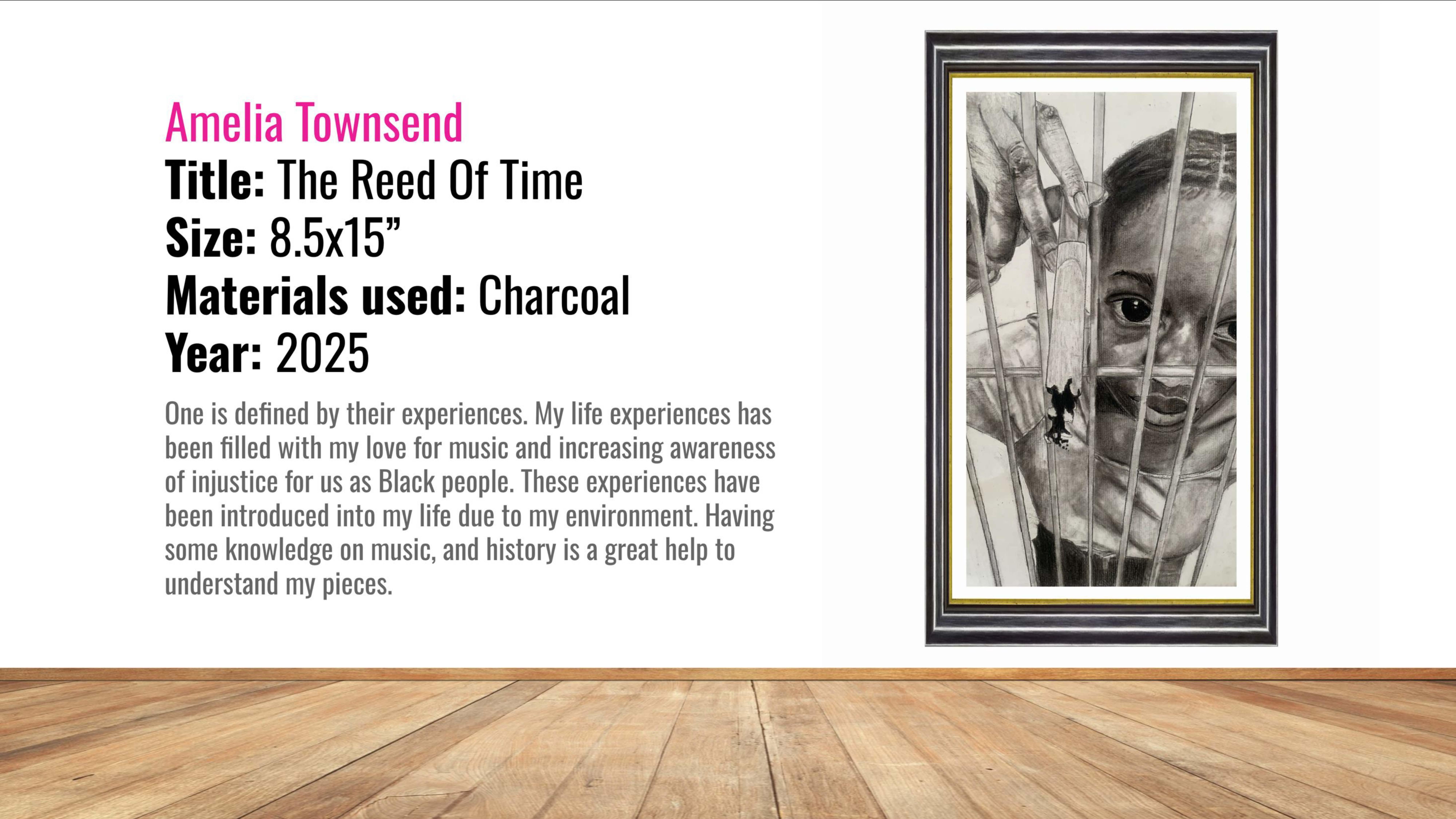 Oneisdefinedbytheirexperiences.Mylifeexperienceshas beenfilledwithmyloveformusicandincreasingawareness ofinjusticeforusasBlackpeople.Theseexperienceshave beenintroducedintomylifeduetomyenvironment.Having someknowledgeonmusic,andhistoryisagreathelpto understandmypieces.