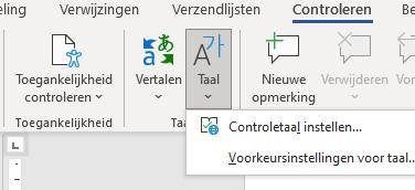 Utilisez les fonctionnalités offertes par le logiciel que vous utilisez ! Le correcteur orthographique dans WORD soulignera non pas toutes mais une bonne partie des fautes, à l’aide du bouton ‘controleren’ ou en bas de votre écran, vous pouvez changer la langue du correcteur d’orthographe. En cliquant sur la langue, vous voyez une liste de langues. Choisissez le français comme langue de référence.