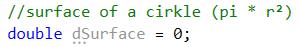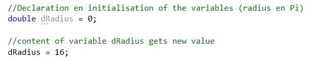 In bovenstaand voorbeeld krijgt de variabele dRadius de waarde 0, en krijgt de variabel dPi de waarde 3.14.