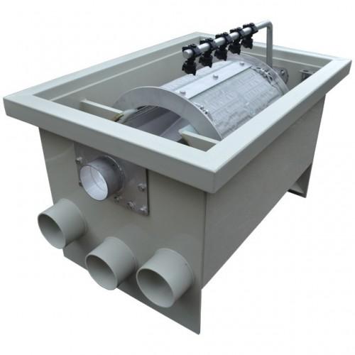 Voorbeeld van een zeefbocht en een trommelfilter als mechanisch filtratie stap