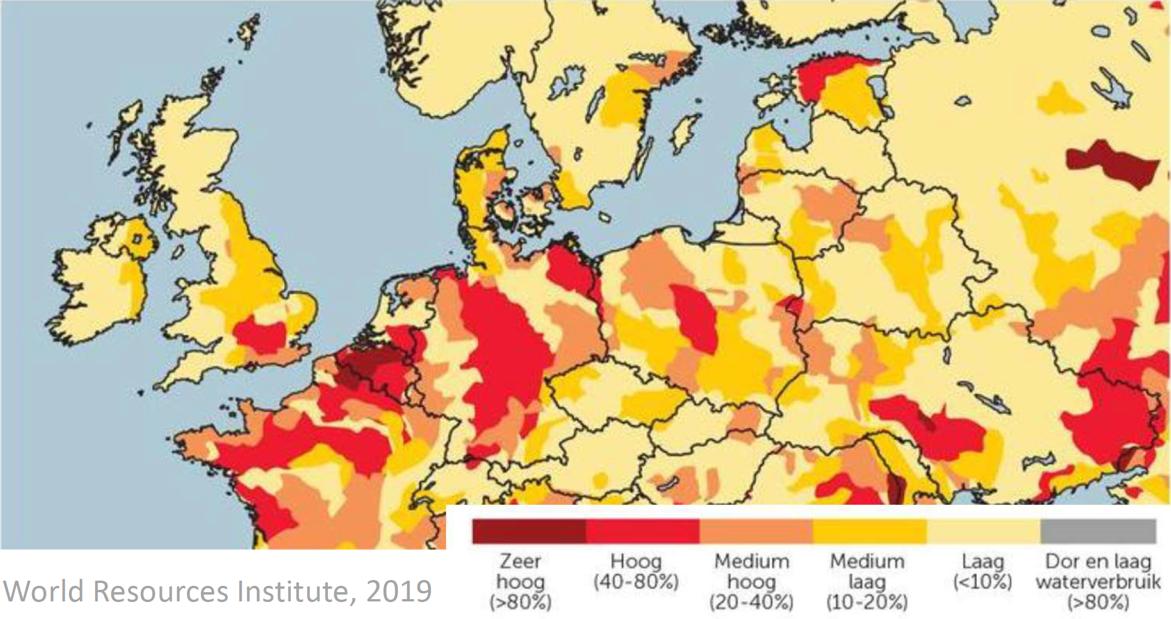 De versnelde afvoer van regenwater door de rechtgetrokken en ingedijkte rivieren, de vele grachtensystemen en drainagesystemen om akkers te ontwateren, de vele gecompacteerde bodems en de hoge urbanisatiegraad maken Vlaanderen bijzonder kwetsbaar voor toenemende droogte. Wereldwijd zijn er maar 22 landen met een grotere waterstressindex dan België (World Resources Institute, 2019)