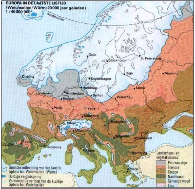 Tijdens de recentste, de Pleistocene, ijstijd (die eindigde ca. 10 000 jaar geleden) werd vanuit het toen droge Noordzee bekken (zeeniveau ongeveer 100 m lager dan heden) veel materiaal opgewaaid en in het binnenland afgezet.