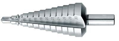 Met deze boor kun je in dunne werkstukken (platen) boringen van verschillende diameter aanbrengen. Dit doe je door tot op de juiste trap te boren. Deze boor wordt meestal gebruikt om elektrische bedieningselementen (drukknoppen) op een plaat te bevestigen.