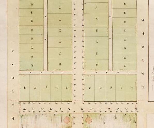 OPPOSITE: 1851 Topograph‐ical Plan of the City of Toronto by Sandford Fleming overlaid with Park Lot boundaries. (University of Toronto Map and Data Library)
