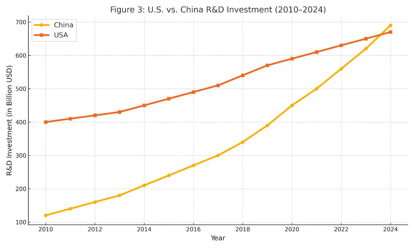 Figure 4: U.S. vs. China R&D Investment (2010–2024)