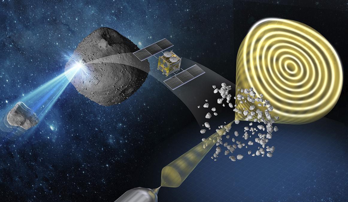 Artistic depiction of the collection and analysis of samples from asteroid Ryugu. Illustration: Yuki Kimura