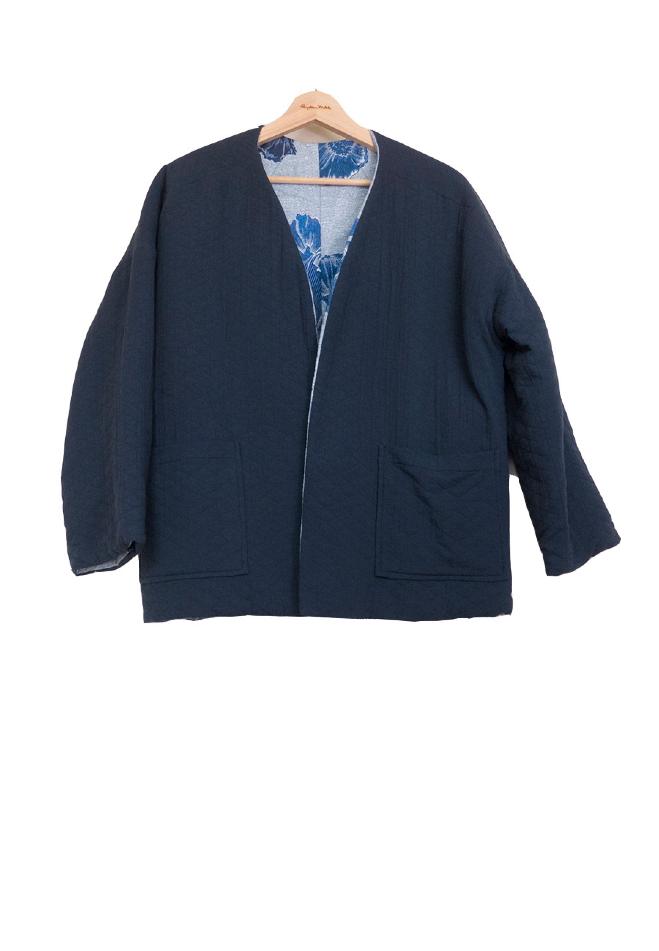 Kimono corto reversible acolchado sin botón.