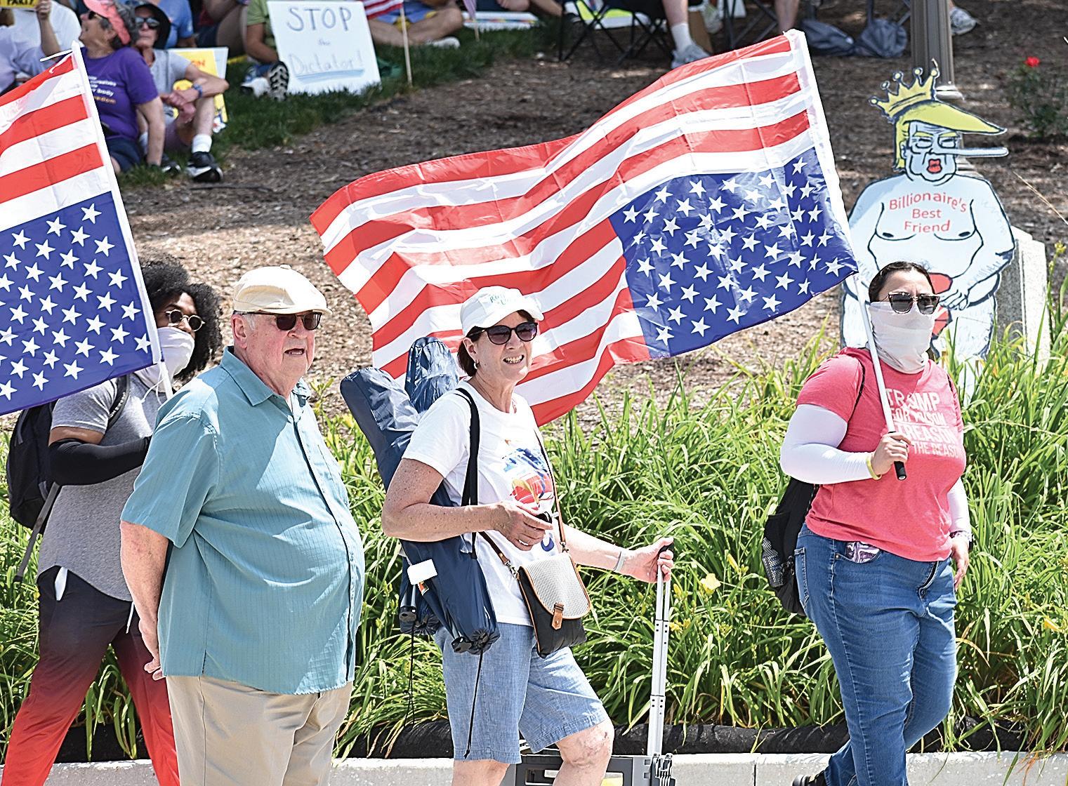 Thousands of people flooded the steps of the Iowa Capitol Saturday to protest against President Donald Trump, whose actions they said are harming the nation and turning towards tyranny.