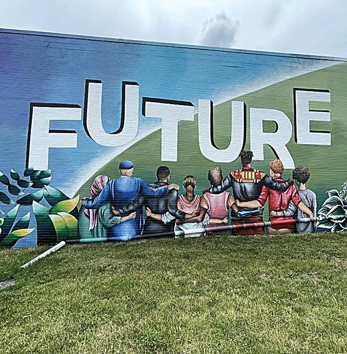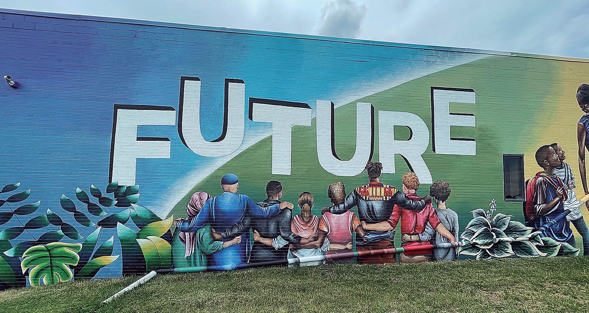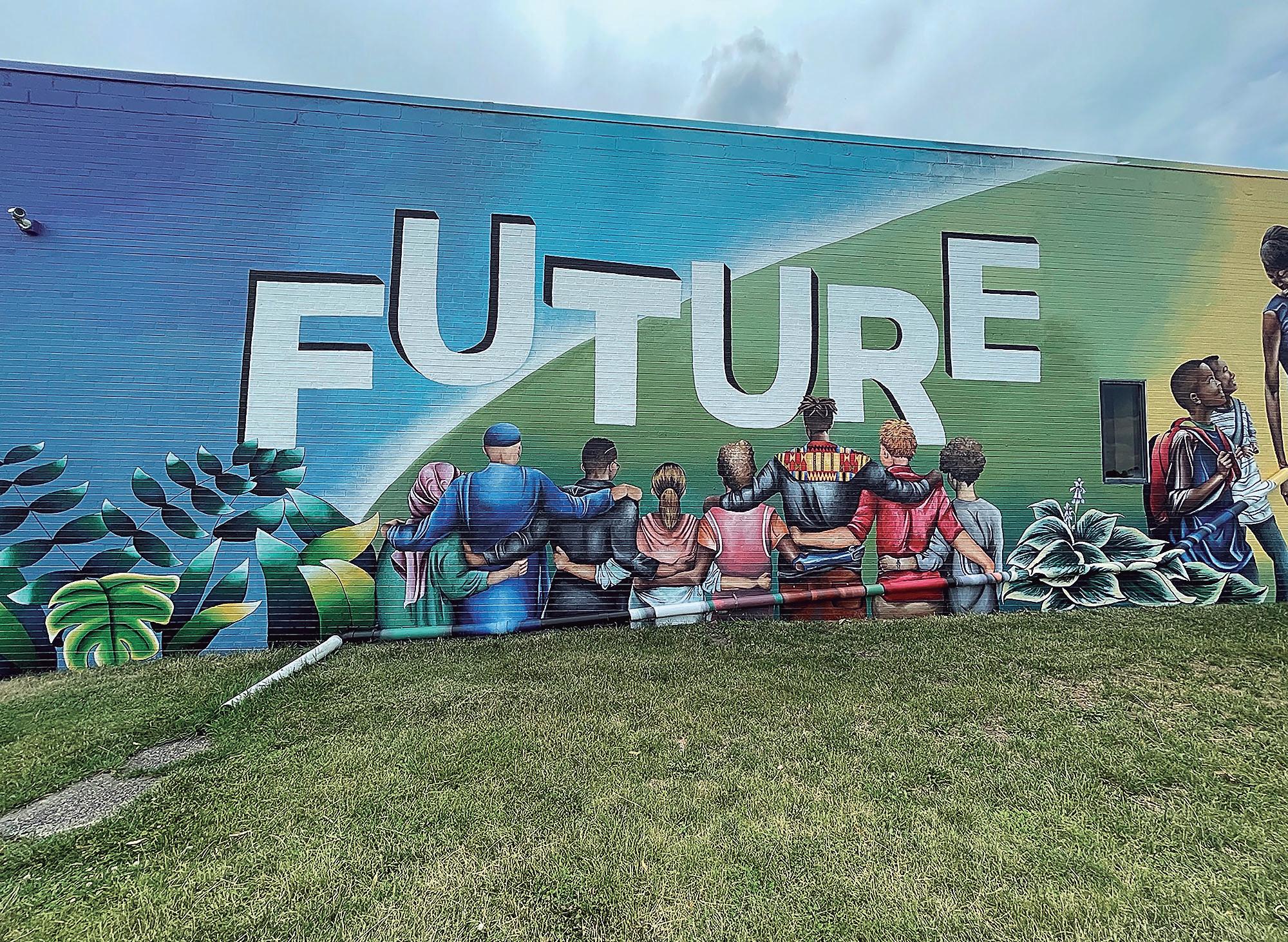 A section from artists Jill Wells and Marissa Hernandez’s mural, Future, in Des Moines, Iowa.