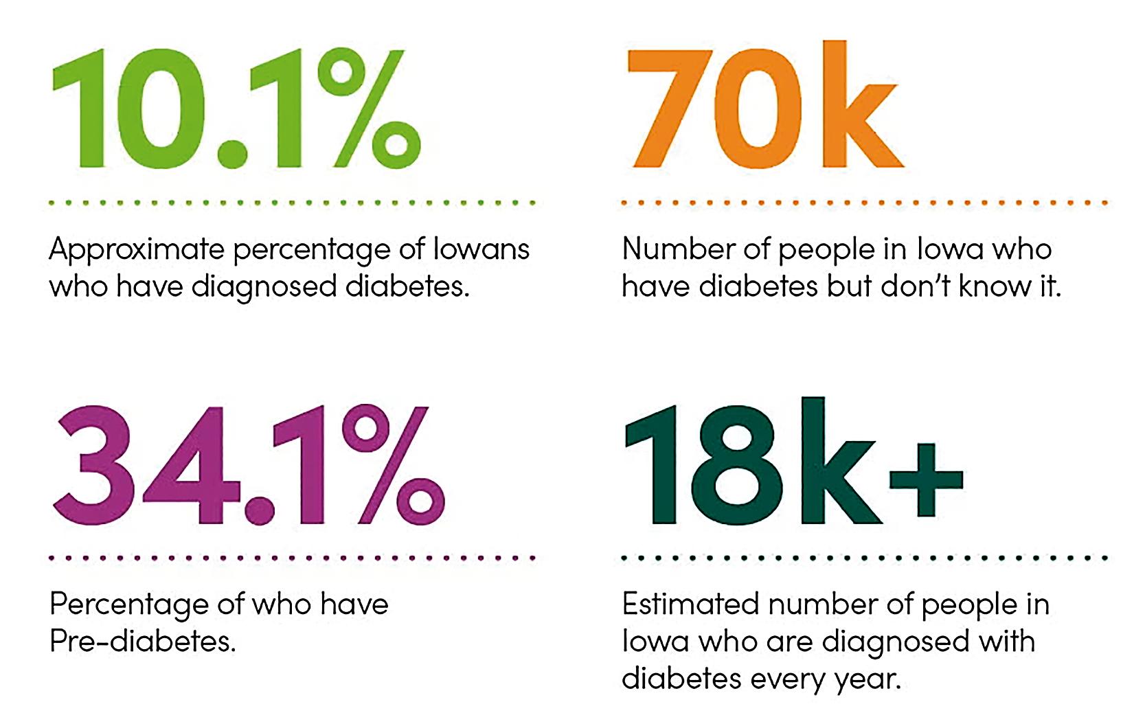Underserved populations face more barriers to screening and care, resulting in higher rates of preventable complications that can often include heart disease, kidney failure, blindness, and amputations. While nearly half of Iowans with Continues next page