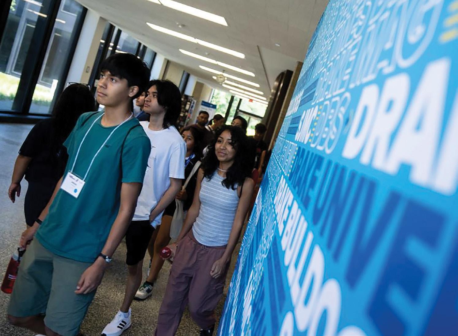 “Pasen, pasen”, dijo Guerra en español, dirigiendo a los grupos al vestíbulo, donde conocieron a sus colegas de Al Éxito y a estudiantes de Drake que les entregaron obsequios antes de ayudarles a instalarse en los dormitorios.