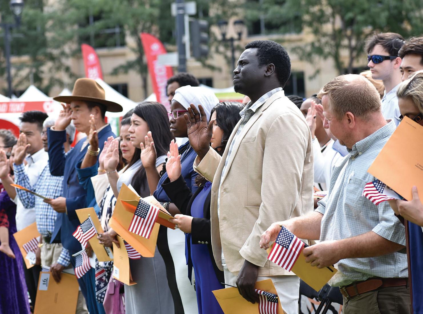El vigésimo año del Festival Mundial de Comida y Música en el centro de Des Moines comenzó con una ceremonia de naturalización durante la cual 52 personas de todo el mundo se convirtieron en ciudadanos estadounidenses.
