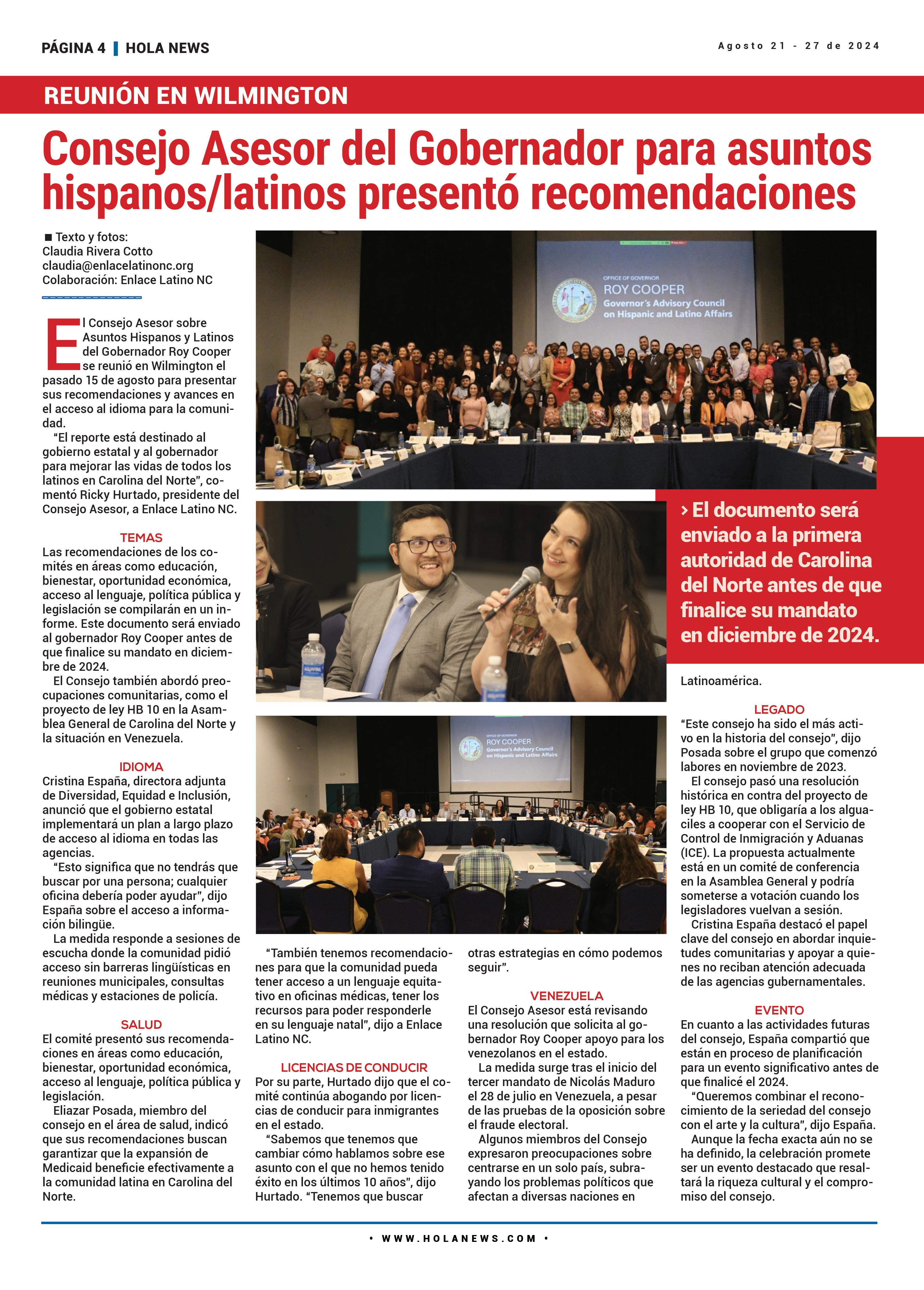 El Consejo Asesor sobre Asuntos Hispanos/Latinos del Gobernador de Carolina del Norte, que se reunió en Wilmington, presentó recomendaciones que serán enviadas a la primera autoridad estatal antes de que finalice su mandato en diciembre de 2024. (Foto crédito: Claudia Rivera Cotto | Enlace Latino NC)