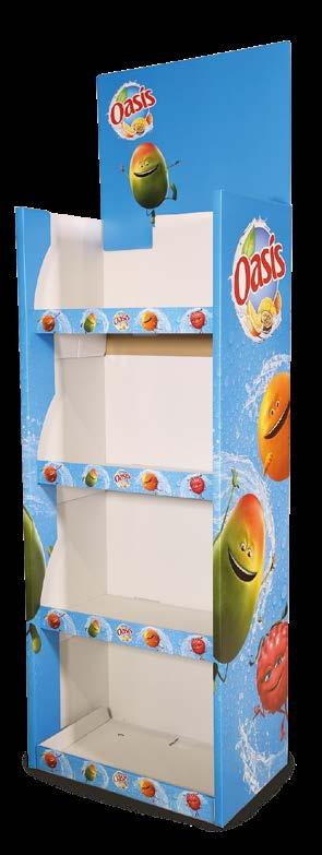 Das Palettendisplay ist ein praktisches Display für die Präsentation Ihrer Produkte. Das Besondere an diesem Display ist, dass es aus Pappe efertigt ist und ein hohes Gewicht tragen kann, bis zu 15 kg pro Tray. Die Höhe der Trays kann durch Verschieben der Röhren angepasst werden.