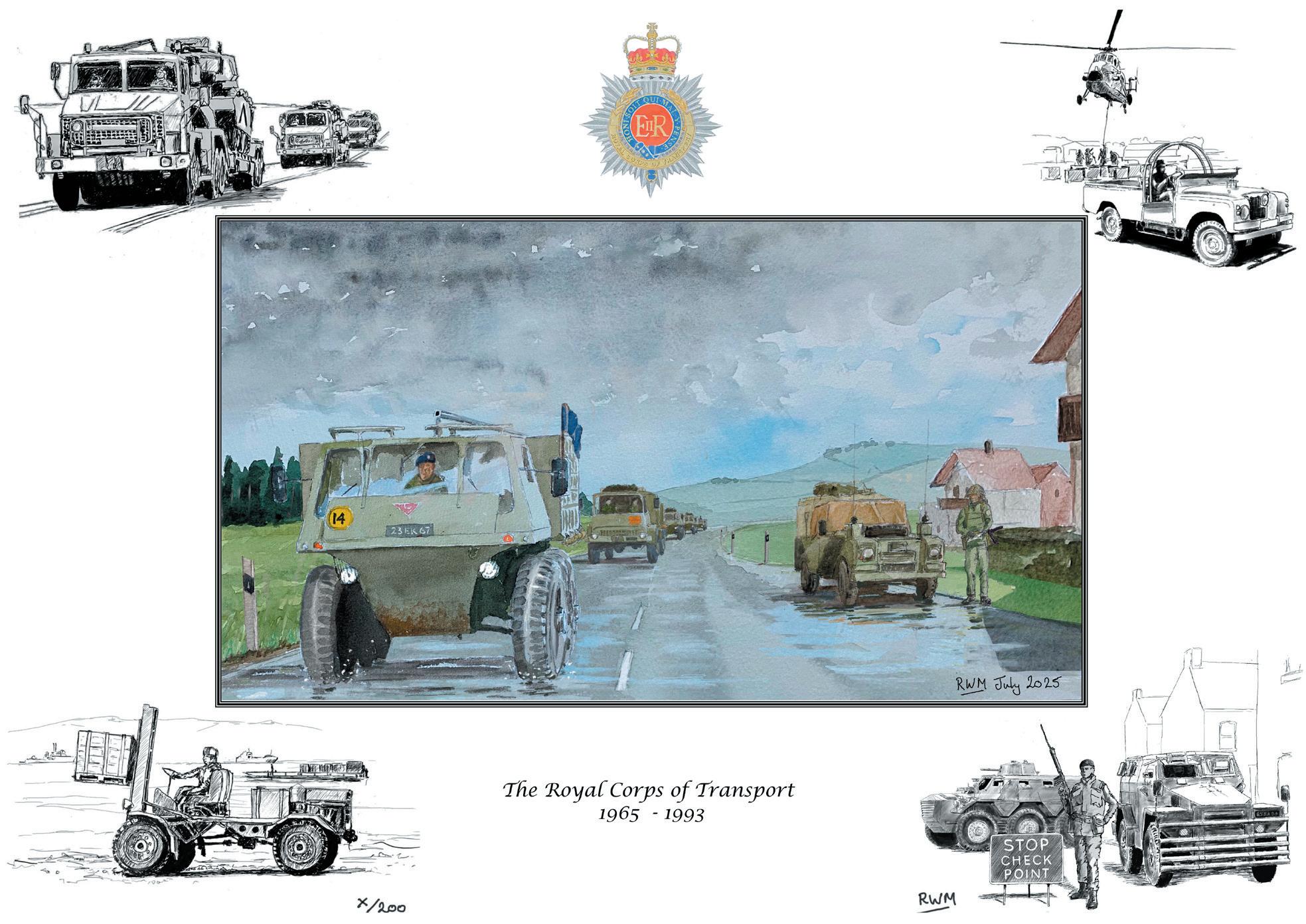 Former Association Secretary, RCT veteran and accomplished artist, Lt Col Robin Moore, was commissioned to produce a painting to commemorate the 60th Anniversary of the formation of the RCT.