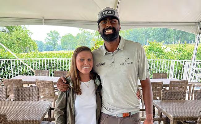 Hope Heffernan ’15 with PGA TOUR professional Sahith Theegala at a client event in June 2022