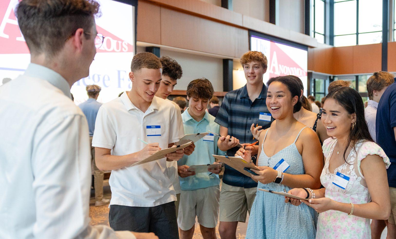 Michael Heyward ’07 speaking to a group of prospective families.