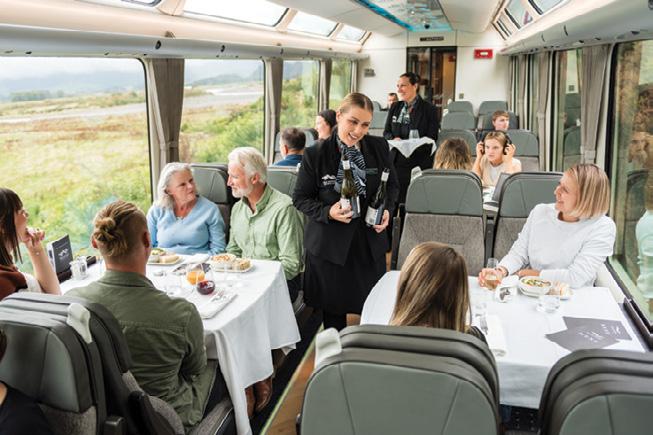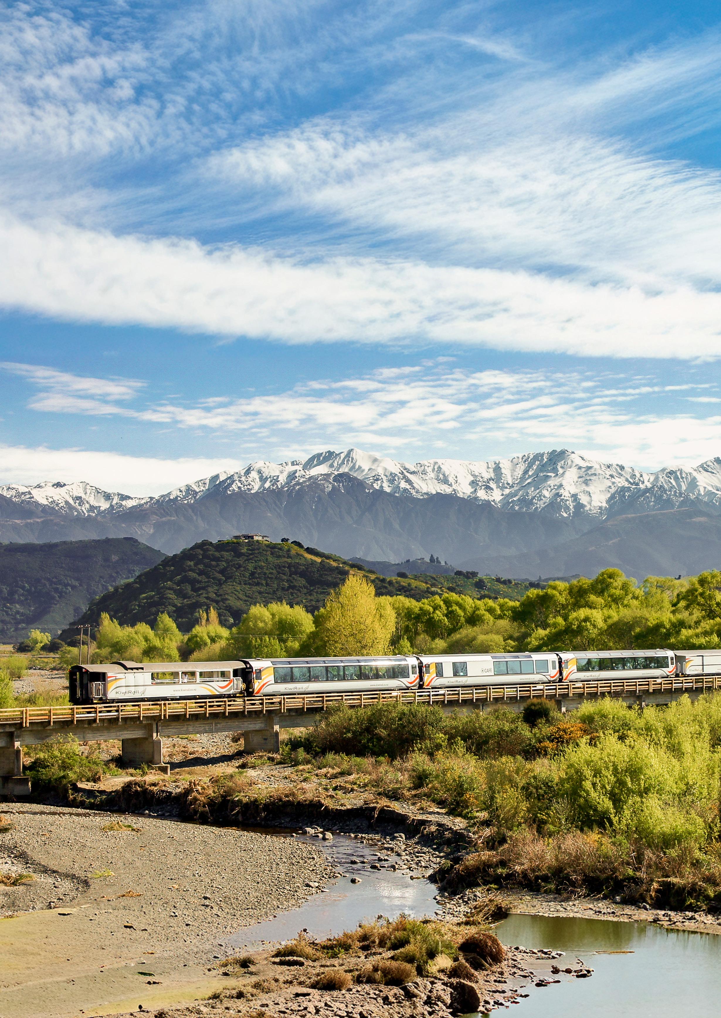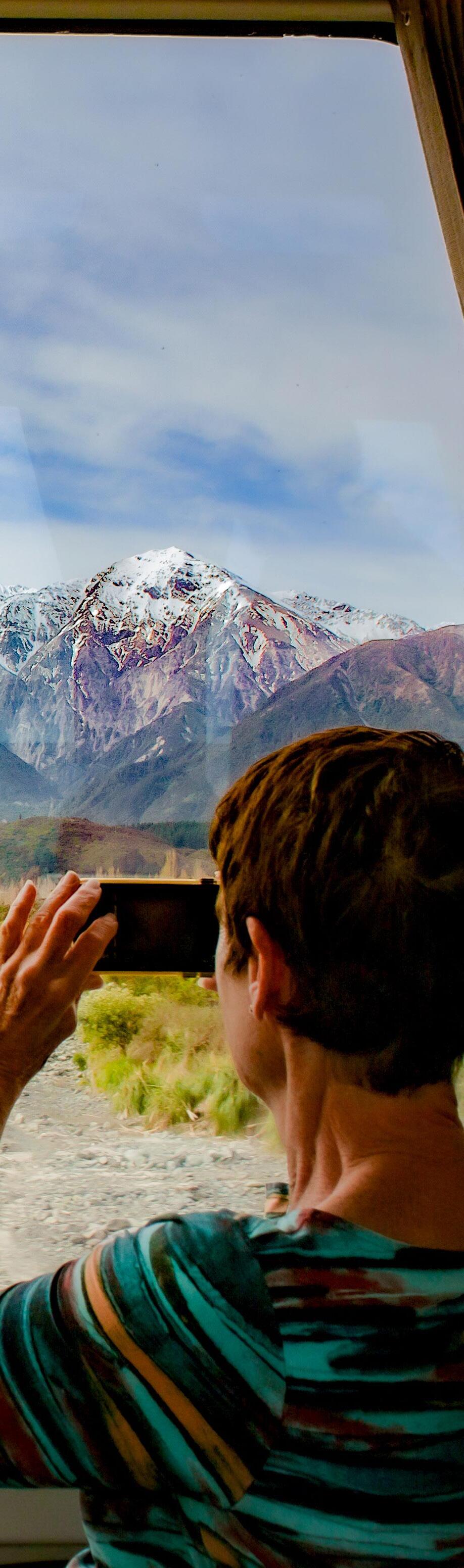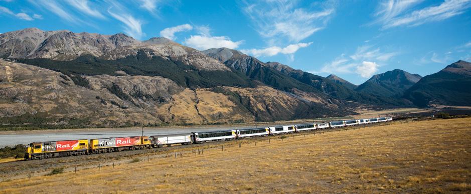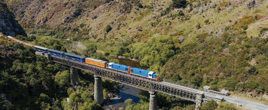 Explore the Southern Alps aboard the TranzAlpine train - one of the world’s great train journeys, covering 223 kilometres (139 miles) one-way and taking just under 5 hours. The TranzAlpine train travels coast-tocoast through the ‘Great Divide’ and the indomitable spine of mountains that partitions New Zealand’s South Island. Book a journey like no other by travelling in either direction from Christchurch to Greymouth, or Greymouth to Christchurch.