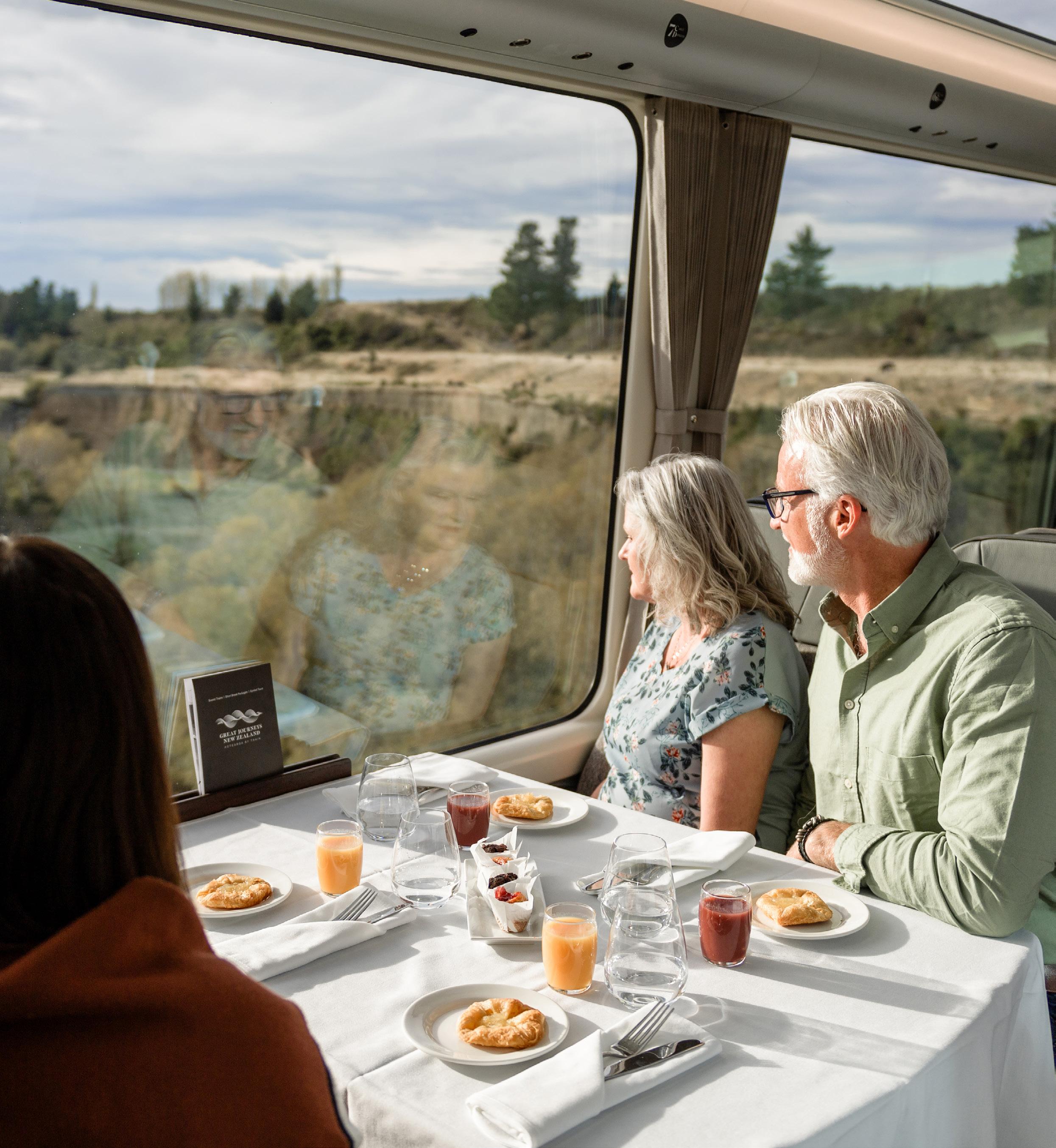 Step aboard our exclusive, purpose-built Scenic Plus carriage — a premium experience available on the Northern Explorer, Coastal Pacific, and TranzAlpine journeys. Enjoy engaging storytelling by our knowledgeable onboard hosts and a paddock-to-plate menu served directly to your seat.