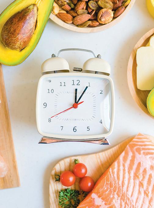 After review ing hundreds of studies on nutrition, diseases and longevity in laboratory animals and humans, the optimal diet for longevity has “lots of legumes, whole grains and vegetables; some fish; no red meat or processed meat and very low white meat; low sugar and refined grains; good levels of nuts and olive oil, and some dark chocolate,” reports University of South ern California gerontology professor Valter Longo. According to the literature review he and others authored for Cell, a day’s meals should ideally occur with in a window of 11 to 12 hours, allowing for a daily period of fasting. A five-day fast or fast-mimicking diet every three to four months was also suggested to help reduce insulin resistance, blood pres sure and other risk factors for those with increased disease risks.